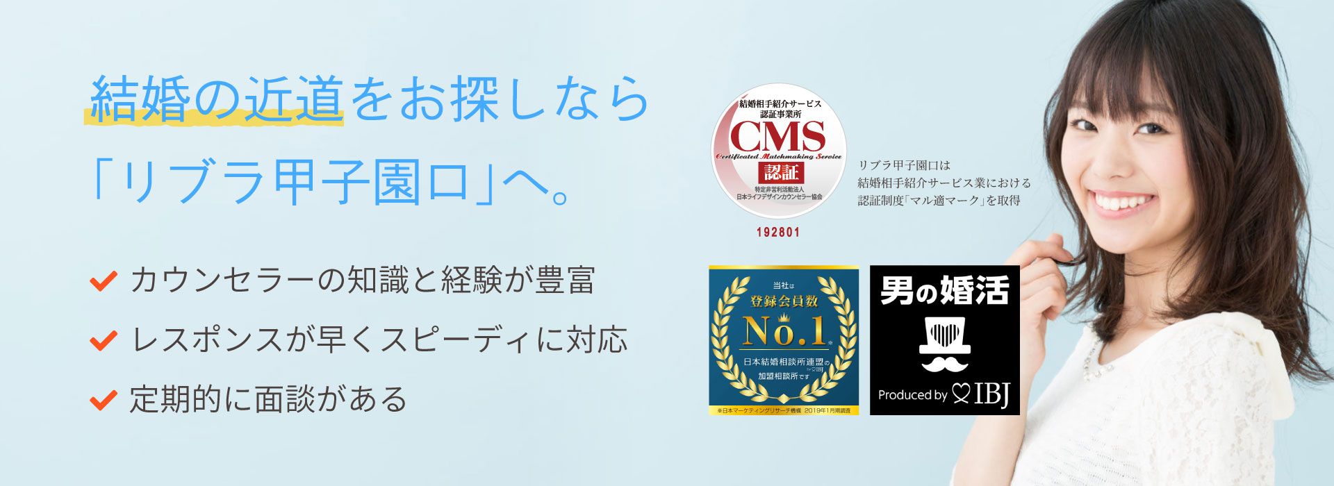 リブラ甲子園口少人数制で専任カウンセラーが定期面談と手厚いサポートを実施。IBJ加盟かつAIマッチング導入で紹介精度を高め、早期成婚を目指す相談所です。月会費(税込)7,000円/月〜入会金(税込)33,000円〜詳細を見る公式サイトを見るプラン月会費(税込)期間要問合せベーシックコース¥7,000/月-他2件のプランを見る