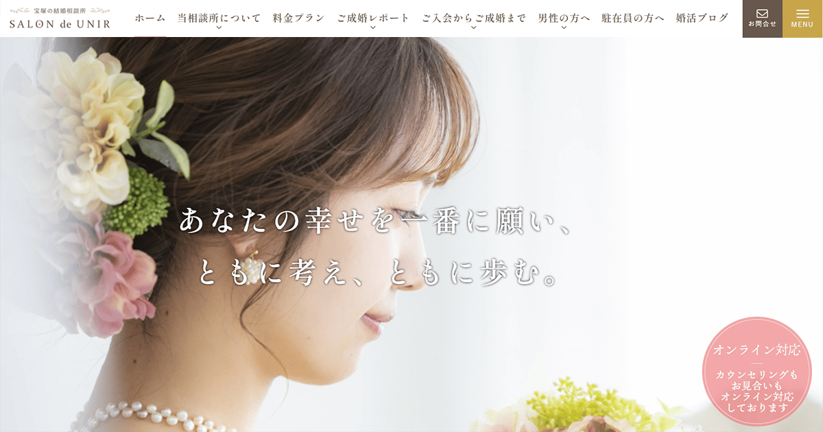 サロン・ド・ユニール10:00~19:00宝塚を拠点に複数大手連盟に正規加盟し、仲人同士の「手組み」お見合いで成婚率を高める個別対応が強み。NLP等の心理学を活かしたコーチングで寄り添う丁寧なサポートを提供します。月会費(税込)5,500円/月〜入会金(税込)11,000円〜詳細を見る公式サイトを見るプラン月会費(税込)期間要問合せ母子家庭応援プラン¥5,500/月-他2件のプランを見る
