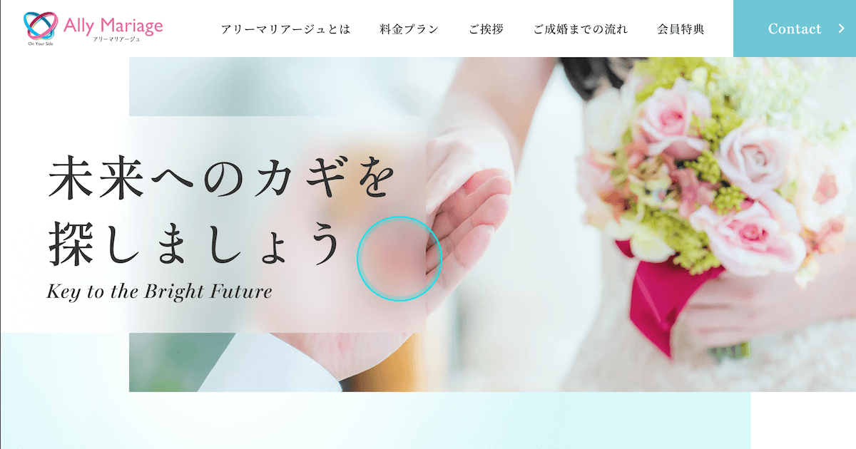 アリーマリアージュアリーマリアージュは京都・滋賀のIBJ正規加盟店。専任カウンセラーが一人ひとりに寄り添い、20代向けの割安プランや手厚いサポートプランを用意。お見合い料無料のプランでまず会って見極められる点が特徴です。月会費(税込)11,000円/月〜入会金(税込)-詳細を見る公式サイトを見るプラン月会費(税込)期間要問合せ20代限定プラン¥11,000/月-他3件のプランを見る