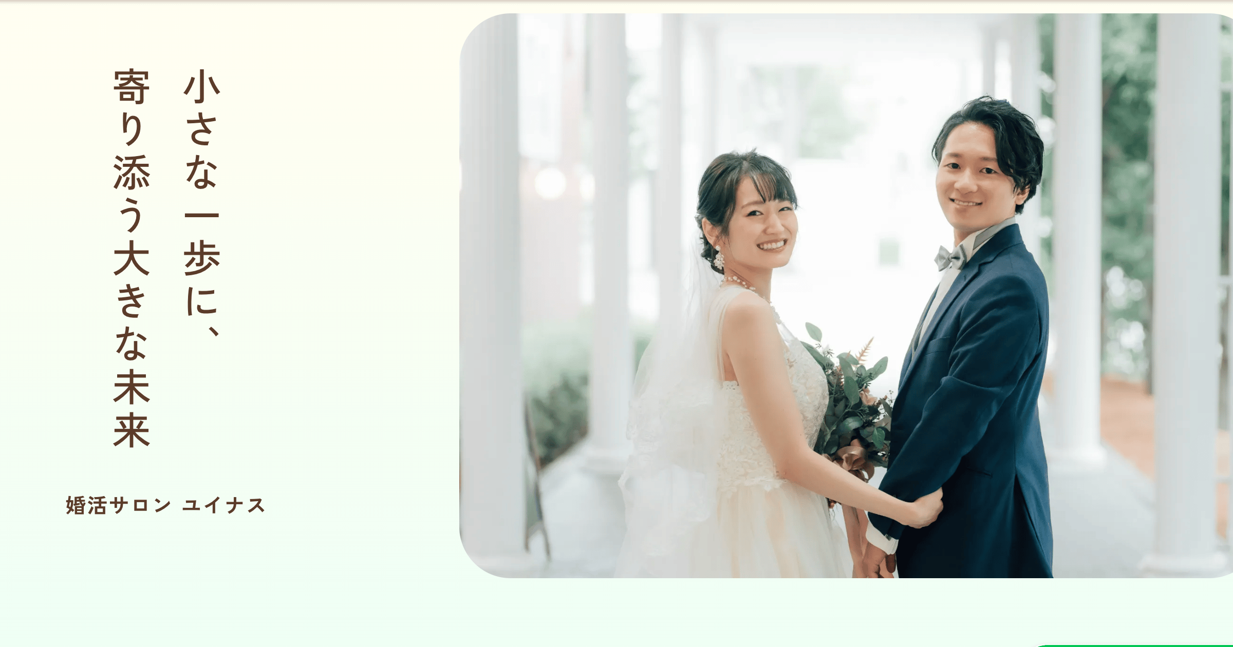 婚活サロン ユイナス09:00~20:00 (不定休)美容師資格を持つ女性カウンセラーがヘア・眉・ファッションを含む外見プロデュースと内面の伴走サポートを提供。IBJの会員数を活かした紹介と小規模ならではの専任サポートで自信を引き出し成婚へ導きます。初回無料相談・オンライン対応あり。月会費(税込)11,000円/月〜入会金(税込)33,000円〜詳細を見る公式サイトを見るプラン月会費(税込)期間要問合せスタンダードプラン¥11,000/月-他1件のプランを見る