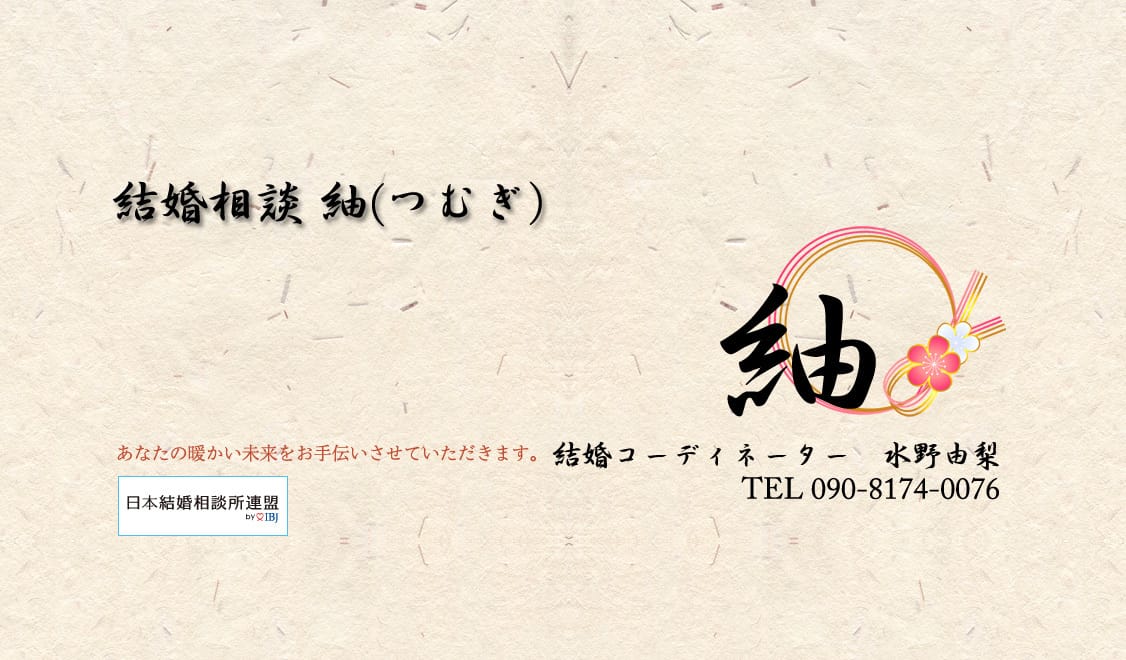 紬専任の結婚コーディネーターが個別相談から成婚まで伴走する少人数制の相談所。無料相談や体験入会を用意し、都内は出張面談も可能。IBJ加盟で幅広い年齢層の支援に対応。中高年や低収入の方も歓迎し無理な勧誘は行いません。担当は水野由梨、電話相談での予約も可能です。月会費(税込) -入会金(税込)-公式サイトを見る