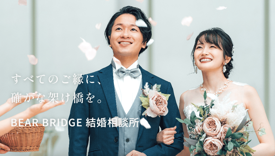 BEAR BRIDGE10:00~18:00 (水・木除く)IBJ正規加盟の小規模相談所で、30年以上の人事経験と3,000件超の面接実績を持つ代表が個別に伴走。IBJの会員データを活かし、対面とオンラインを組み合わせた丁寧なサポートで成婚を目指します。月会費(税込)8,000円/月〜入会金(税込)66,000円〜詳細を見る公式サイトを見るプラン月額(税込)期間要問合せライトプラン¥8,000/月-他3件のプランを見る