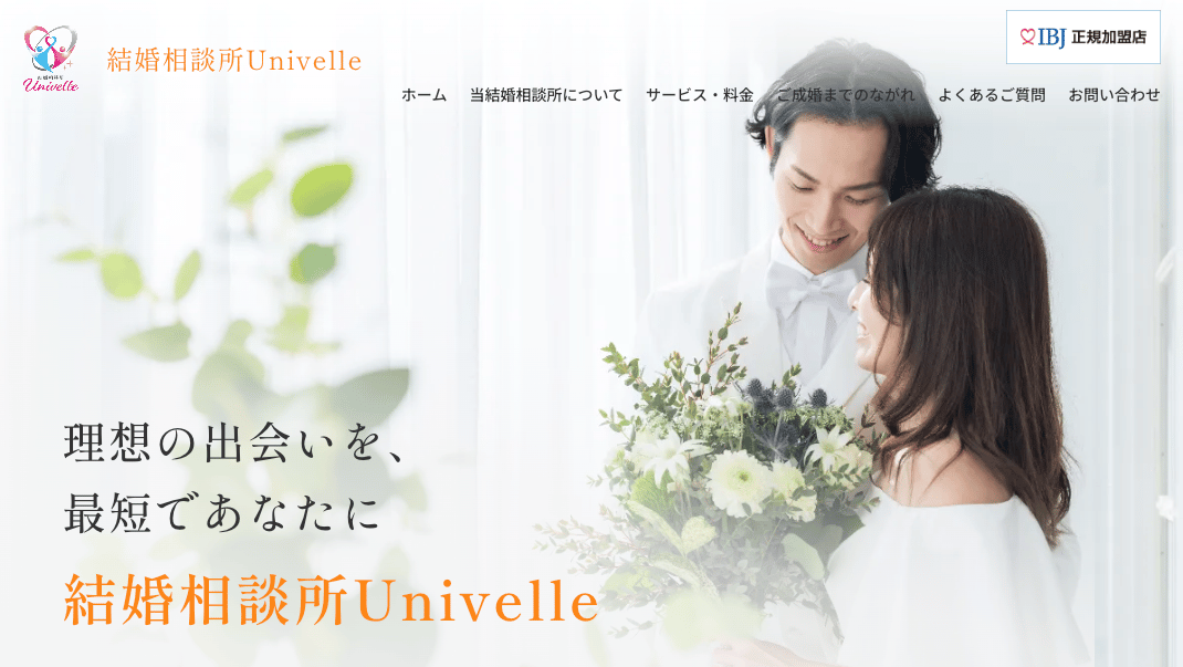 Univelle10:00~20:00 (定休日:火、水、祝祭日、年末年始)代表カウンセラー自身の短期成婚経験を活かし、IBJ約9万人の会員網を用いて一人ひとりに寄り添う個別指導で短期成婚を目指す、板橋区近辺の少人数制結婚相談所です。月会費(税込)8,800円/月〜入会金(税込)55,000円〜詳細を見る公式サイトを見るプラン月額(税込)期間要問合せスタンダードプラン¥8,800/月-他3件のプランを見る