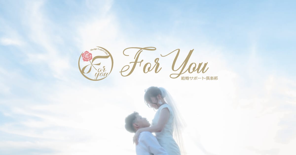 ForYou結婚サポート倶楽部10:00~19:00(火曜定休)山口県密着の仲人型結婚相談所。ベテランカウンセラーによる個別伴走で成婚率の高さを実現し、磨き塾や季節イベントで実践的な出会いと自信作りを支援します。全国IBJ・TMSの会員網(10万人超)を活用し、短期成婚を目指します。月会費(税込)13,000円/月〜入会金(税込)33,000円〜詳細を見る公式サイトを見るプラン月会費(税込)期間要問合せスタンダードコース¥13,000/月-他2件のプランを見る