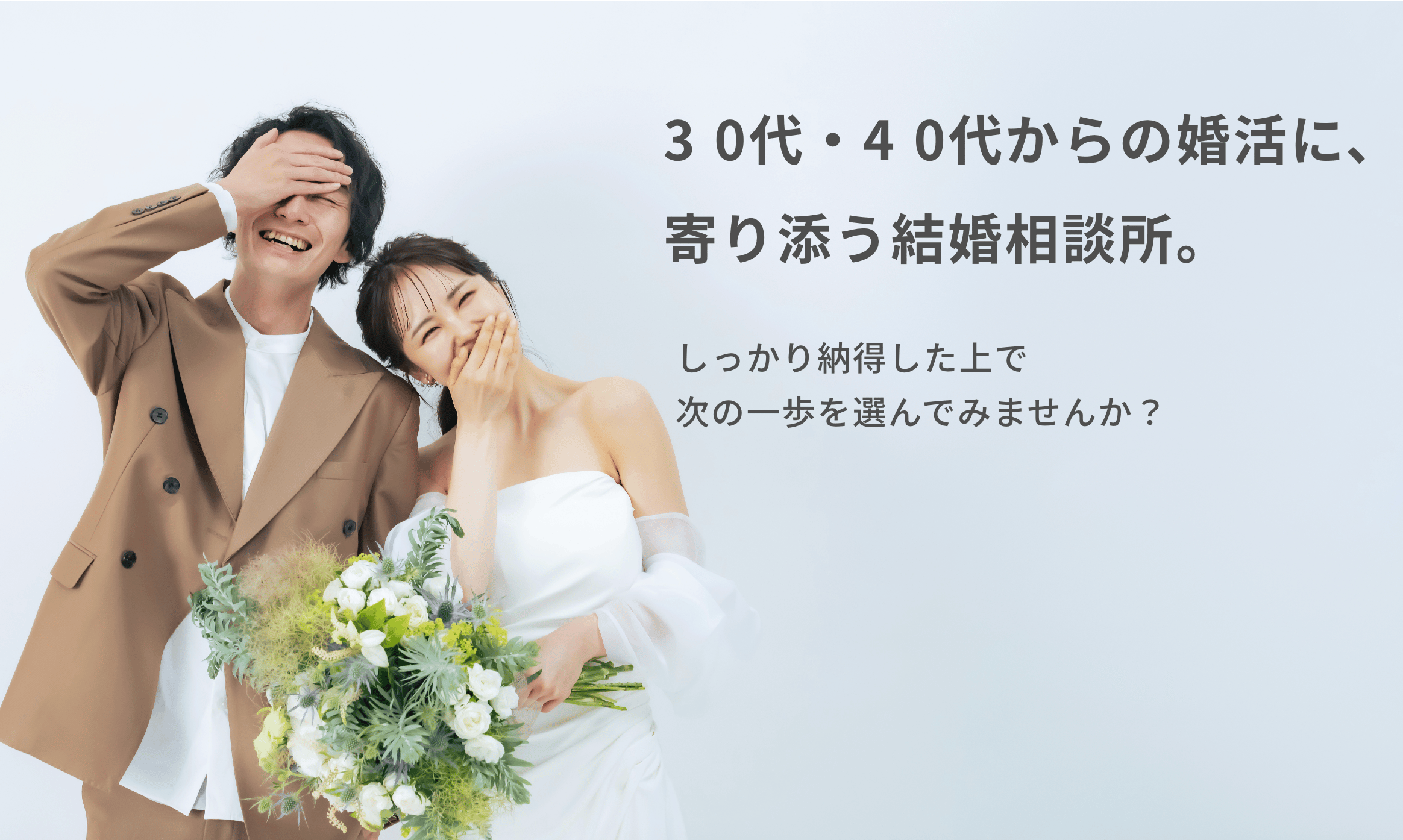 ホワイトブーケ四ツ橋駅から徒歩5分10:00~19:00コミュニケーションのプロであるカウンセラーが、JBA約4.5万人の会員データベース検索と仲人推薦を組み合わせて、個別にモテ力を高めながら「ちゃんと恋して結婚する」ことを目指すサポートを提供します。月会費(税込)11,000円/月〜初期費用(税込)44,000円〜公式サイトを見るプラン月会費入会金成婚料お見合い料契約期間アクティブ婚活プラン¥11,000¥11,000+登録料 ¥33,000¥110,000無料1年